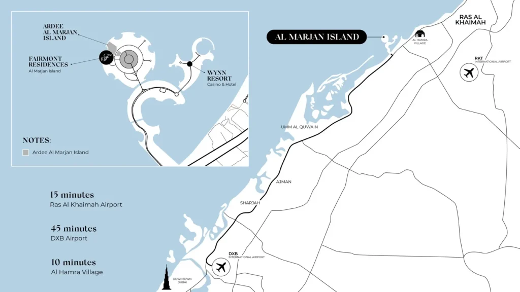 Fairmont Residences Al Marjan Island sets a new benchmark for coastal luxury living in Ras Al Khaimah. Located along the pristine shores of Al Marjan Island, this branded residential destination blends contemporary seaside architecture with Fairmont’s century-long heritage of refined hospitality. The masterfully designed community offers an elevated lifestyle defined by panoramic sea views, direct beach access, and a serene island atmosphere . The residences are thoughtfully designed to maximize natural light and uninterrupted views of the Arabian Gulf, with floor-to-ceiling windows, refined finishes, and elegant open-plan living spaces. Residents enjoy seamless indoor–outdoor living, surrounded by landscaped gardens, beachfront promenades, and resort-style amenities. Positioned within easy reach of both Ras Al Khaimah International Airport and Dubai International Airport, the destination combines tranquil island living with excellent connectivity . As part of a vibrant mixed-use masterplan, Fairmont Residences Al Marjan Island integrates luxury residences with world-class hospitality, dining, wellness, and leisure experiences, offering a complete resort lifestyle for homeowners and investors seeking premium beachfront property in the UAE .