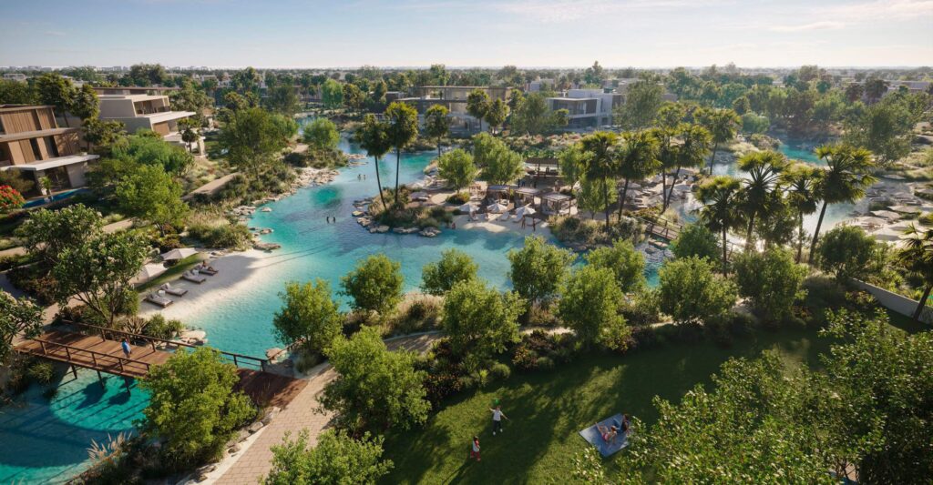 The Acres Estates is an exclusive master-planned community of standalone luxury villas set within a lush, nature-driven environment in Dubailand. Designed as a tranquil residential sanctuary, the development is characterised by serene gardens, swimmable lagoons, and meandering pathways that follow the natural contours of the land—creating a seamless connection between homes and the outdoors.