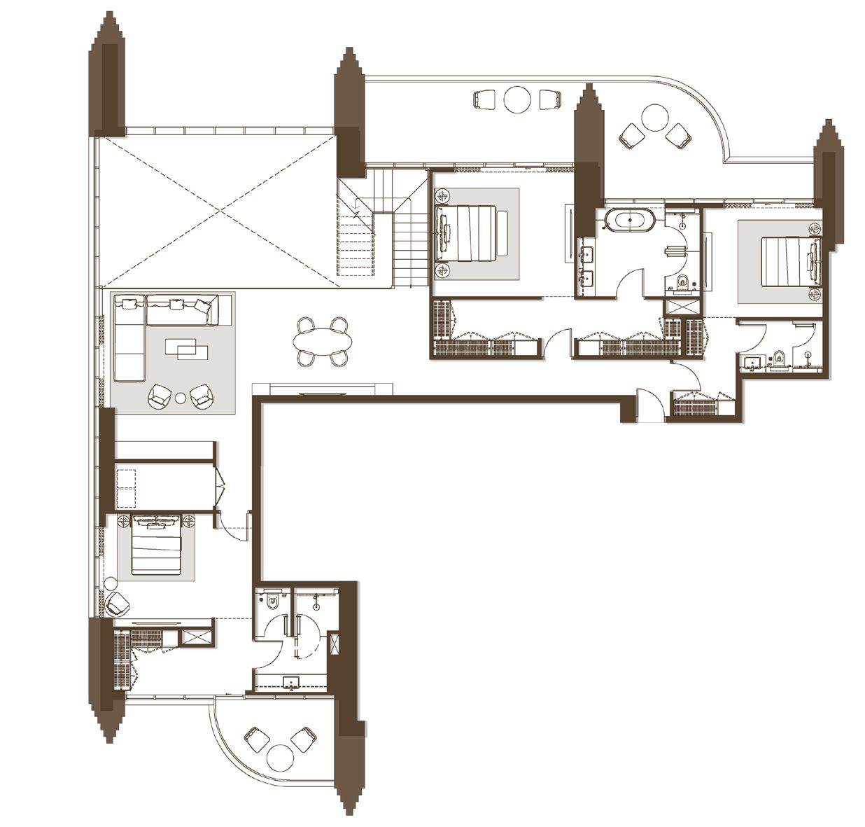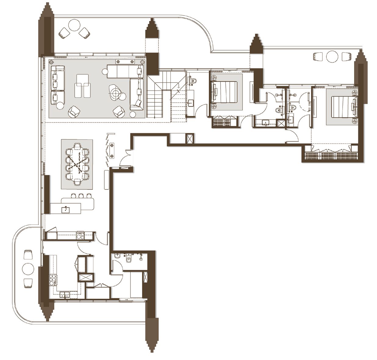The penthouses at Atélis at d3 represent the ultimate expression of luxury waterfront living in Dubai Design District. Rising above the city, these exceptional five-bedroom residences feature soaring double-height living and dining spaces, statement staircases, and expansive private terraces that capture breathtaking panoramic views of the Dubai skyline and the waterfront. Designed for elevated everyday living and refined entertaining, the flowing open-plan layouts create a seamless connection between elegant interiors and generous outdoor spaces. Floor-to-ceiling windows flood the home with natural light, enhancing the sense of scale and drama, while exquisitely crafted finishes reflect a commitment to contemporary sophistication and timeless design. Lavish bedrooms are conceived as private sanctuaries, complemented by spa-style bathrooms that elevate daily rituals into moments of indulgence. Expansive terraces offer a spectacular setting for entertaining guests or enjoying quiet moments of retreat above the city. Residents enjoy privileged access to Atélis at d3’s full suite of resort-style amenities, including cascading swimming pools, an infinity pool with skyline views, landscaped garden lounges, wellness and fitness facilities, co-working areas, entertainment rooms, and family-focused spaces—delivering an iconic lifestyle at one of Dubai Design District’s most prestigious waterfront addresses.