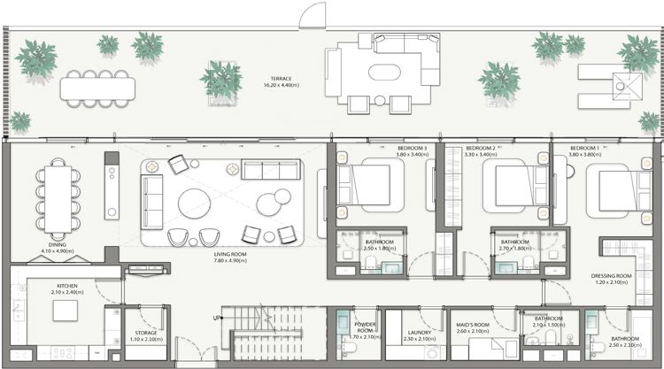 The townhouses at Palm Central combine architectural presence with the calm of beachfront living, offering an elegant and spacious home in a serene coastal setting. These four-bedroom townhouses feature impressive double-height living spaces that enhance the sense of light and openness, creating a striking yet welcoming environment for everyday living and entertaining. Each townhouse enjoys direct access to beautifully landscaped gardens and the beach, allowing residents to step seamlessly from their private living spaces into nature and the shoreline. Generous terraces extend the living areas outdoors, providing private spaces to relax and unwind while enjoying sea air and tranquil surroundings. With refined finishes, thoughtful layouts, and private garages, the townhouses at Palm Central deliver understated luxury within an exclusive resort-style waterfront community on Palm Jebel Ali. Ideal for families seeking space, privacy, and direct beachside living in one of Dubai’s most prestigious island destinations.